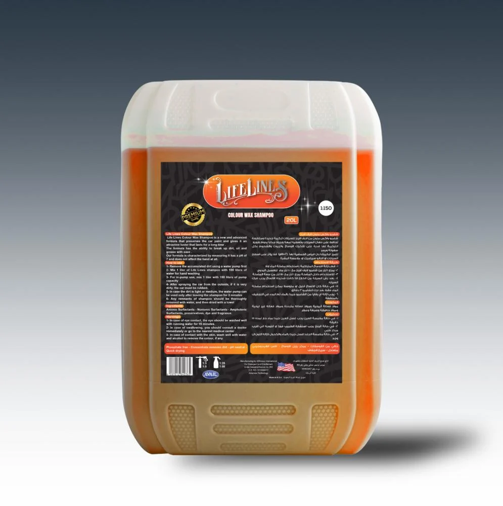 شامبو لايف لاينز البرتقالي هو الحل الأمثل لغسيل وحماية سيارتك في خطوة واحدة. تم تصميم هذه التركيبة الجديدة والمتطورة خصيصًا لتمنحك لمعة وبريقًا جذابًا يدوم طويلًا، مع الحفاظ على دهان السيارات وتقنية النانو سيراميك دون أي تأثير سلبي. تتميز تركيبتنا القوية بقدرتها الفائقة على تفكيك الأوساخ والزيوت والشحوم بكل سهولة، بينما تحافظ على درجة حمضية متعادلة (pH=7). هذا يعني أنه آمن تمامًا على جميع أسطح السيارة وملامسة البشرة. اختر شامبو واكس لايف لاينز للحصول على نظافة عميقة وحماية دائمة. 🚿 طريقة الاستخدام (غسيل وحماية سريعة) التحضير الأولي: قم بإزالة الأوساخ المتراكمة بالماء أولاً إذا كانت شديدة. للتخفيف اليدوي: يمزج 1 لتر من شامبو لايف لاينز مع 100 لتر من الماء. للمضخات الاحترافية: يمزج 1 لتر مع 150 لتر من سعة المضخة. التطبيق والفرك: بعد رش السيارة، يفضل فركها إذا كانت شديدة الاتساخ. الشطف: في حال الاتساخ القليل/المتوسط، يمكن استخدام مضخة الماء فقط بعد ترك الشامبو 3 دقائق. التجفيف: يجب إزالة أي بقايا من الشامبو جيدًا بالماء، ثم البدء في التجفيف بمنشفة نظيفة. ⚠️ تحذيرات السلامة في حالة ملامسة العين: يجب غسل العين جيدًا بماء جارٍ لمدة 15 دقيقة. في حالة البلع: يجب استشارة الطبيب فوراً أو التوجه إلى أقرب مركز طبي. في حالة ملامسة الجلد: اغسل جيدًا بالماء والكحول لإزالة اللون (إن وجد).